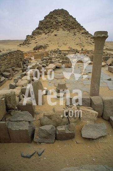 akg896524 Dahschur-Süd (Ägypten), Knickpyramide des Snofru (Altes Reich, 4.Dynastie, um 2615 v.Chr.; im Verlauf der Bauarbeiten wurde der Neigungswinkel geändert, weil der Baugrund nachgab).-Teilansicht.-Foto, undat.