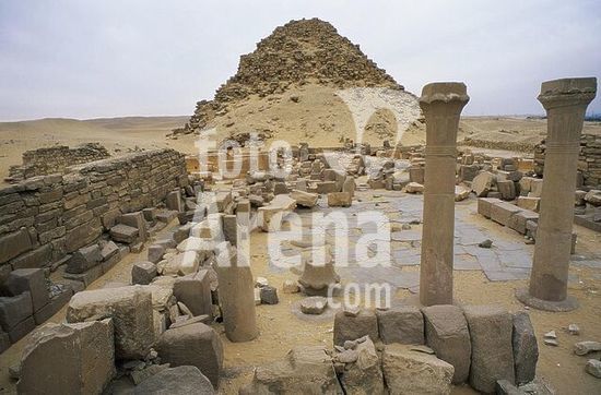 akg999175 Sakkara / Saqqara (Mittelägypten), Grabbezirk des Djoser, Stufenpyramide des Djoser (Altes Reich, 3.Dynastie, um 2680 v.Chr.).-Blick vom kleinen Festhof (Kapellenhof) zur Stufenpyramide; im Vordergrund der Tempel T.-Foto, undatiert.