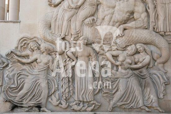 akg973832 Vichy (Dép.Allier, Auvergne, Frankreich), Centre thermal des Dômes (erbaut 1899-1903; Arch.: Charles Lecoeur), Trinkhalle.-"La Source" (Die Quelle)".-Ausschnitt aus dem Wandgemälde, 1903, von Alphonse Osbert (1857-1939). Foto, 2006.