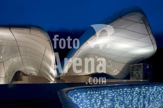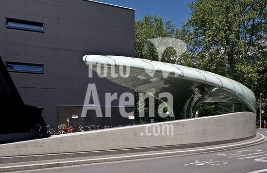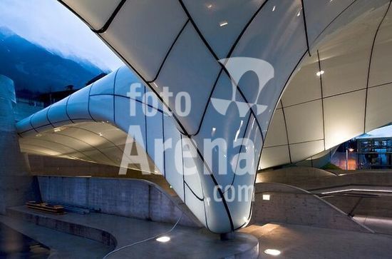 akg1063251 Innsbruck (Tirol, Österreich), Hungerburgbahn (Standseilbahn, Neubau, Inbetriebnahme 2007; Arch.: Zaha Hadid).-Teilansicht: Talstation Congress.-Foto, 2009.