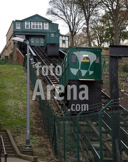 akg1031240 Scarborough (North Yorkshire, England), Central Tramway (Standseilbahn, Verbindung zwischen der Stadt und dem Strand, eröffnet 1881).-Ansicht mit Blick auf die Bergstation.-Foto, undat.