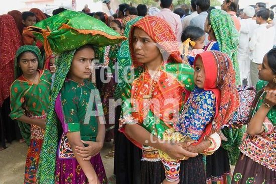 akg1148383 Völkerkunde / Indien. /-Im Dorf Dhrag bei Bhuj (Gujarat, Indien): Frau der Hindu-Kaste der Ahir mit Kindern an einem Festtag.-Foto, 23.02.2009.
