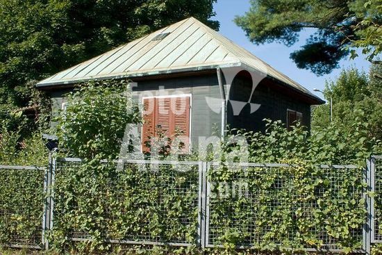 akg434667 Berlin-Köpenick, Wasserwerk Friedrichshagen (Inbetriebnahme 1893; Arch.: Richard Schultze; seit 1987 befindet sich im stillgelegten Teil des Werkes das Museum im Wasserwerk). /-Außenansicht eines Rieseler-Gebäudes (Rieseler I u.IV) in dem das Wasser durch Belüftung von Eisen und Mangan befreit wird.-/Foto, um 1991.