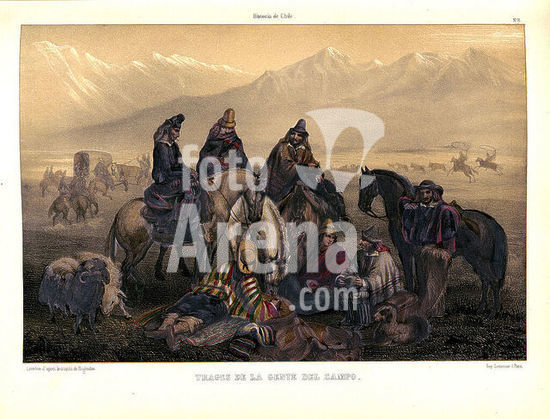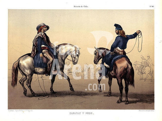 orz218668 TRAGES DE LA GENTE DEL CAMPO EN ATLAS DE LA HISTORIA FISICA Y POLITICA DE CHILE, 1854. Author: GAY CLAUDIO. Location: BIBLIOTECA NACIONAL-COLECCION. MADRID. SPAIN.