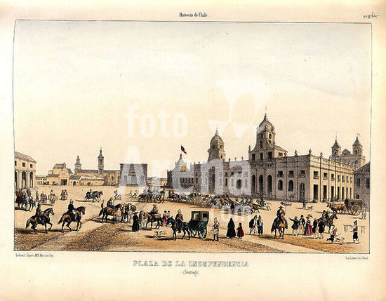 orz218672 PLAZA DE LA INDEPENDENCIA DE SANTIAGO EN ATLAS DE LA HISTORIA FISICA Y POLITICA DE CHILE, 1854. Author: GAY CLAUDIO. Location: BIBLIOTECA NACIONAL-COLECCION. MADRID. SPAIN.