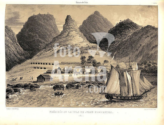 orz218676 PRESIDIO EN LA ISLA DE JUAN FERNANDES EN ATLAS DE LA HISTORIA FISICA Y POLITICA DE CHILE, 1854. Author: GAY CLAUDIO. Location: BIBLIOTECA NACIONAL-COLECCION. MADRID. SPAIN.