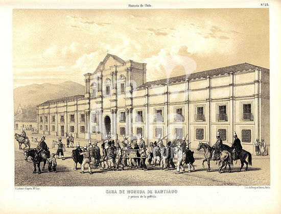 orz218685 CASA DE MONEDA DE SANTIAGO EN ATLAS DE LA HISTORIA FISICA Y POLITICA DE CHILE, 1854. Author: GAY CLAUDIO. Location: BIBLIOTECA NACIONAL-COLECCION. MADRID. SPAIN.