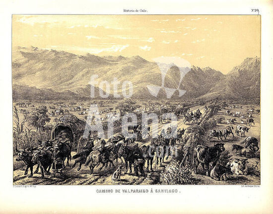 orz218689 CAMINO DE VALPARAISO A SANTIAGO EN ATLAS DE LA HISTORIA FISICA Y POLITICA DE CHILE, 1854. Author: GAY CLAUDIO. Location: BIBLIOTECA NACIONAL-COLECCION. MADRID. SPAIN.