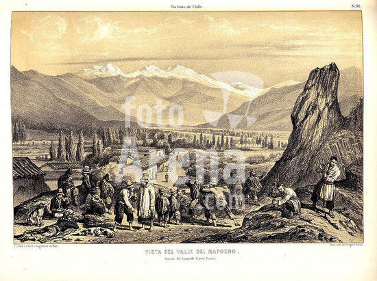 orz218691 VISTA DEL VALLE DEL MAPOCHO EN ATLAS DE LA HISTORIA FISICA Y POLITICA DE CHILE, 1854. Author: GAY CLAUDIO. Location: BIBLIOTECA NACIONAL-COLECCION. MADRID. SPAIN.