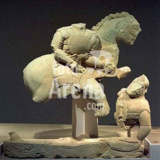 Buchmalerei, oberrheinisch, um 1260. - Martyrium des Heiligen Sebastian. - Aus einem zisterziensischen Psalter, dem sog. Bonmont-Psalter. Aus einem dem Psaltertext vorangestellten Zyklus ganzseitiger Miniaturen mit Darstellungen einzelner Heiliger und Christusbildern auf den Recto-Seiten 7 bis 22. Vermutlich aus einem Zisterzienserkloster der Diözese Basel. Feder und Deckfarben auf Pergament, Blattformat 24 x 17 cm. Ms 54, fol.15 recto. Besançon, Bibliothèque Municipale. Museum: Besançon, Bibliothèque Municipale. Author: ANONYMOUS.