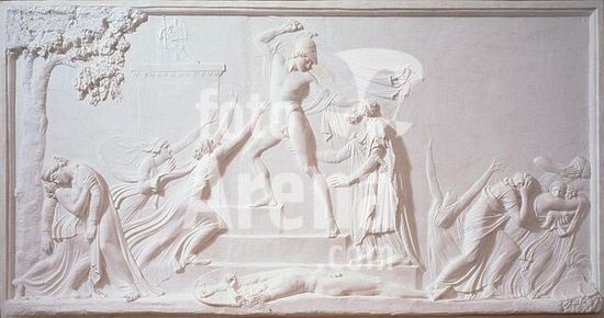 akg289671 Canova, Antonio; 1757-1822. "La morte di Priamo" (death of Priam), c. 1787/90. (Neoptolemus (Pyrrhus), son of Achilles, kills Priam on the altar of Zeus; - Vergil, Aeneid 2). Plaster, 138 × 264cm. From a series of reliefs with scenes from Homer, Vergil and Platon. Inv. no. 26.