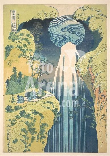 akg5040633 Katsushika Hokusai 1760-1849. The Amida Falls in the Far Reaches of the Kisokaido Road (Kisoji no oku Amida-ga-taki), from the series A Tour of Waterfalls in Various Provinces (Shokoku taki meguri), Woodblock print, ca. 1830-1833. Edo period (1615-1868). Polychrome woodblock print; ink and color on paper, 37.5 × 26 cm. Inv. Nr. JP2928. New York, Metropolitan Museum of Art.