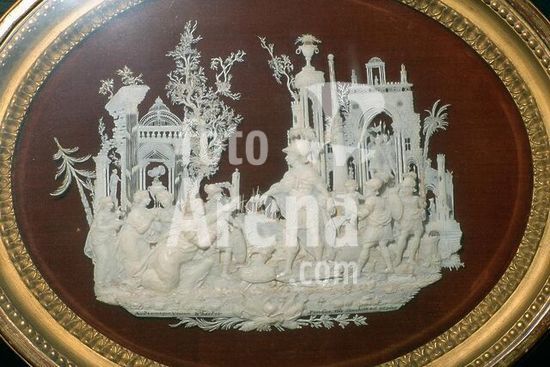 akg564544 Carved ivory, French, Dieppe, 18th century. Andromacha, Hector's widow, appears before Pyrrhus, the son of Achilles. Dieppe, Musée du Château. Museum: Dieppe, Musée du Château.