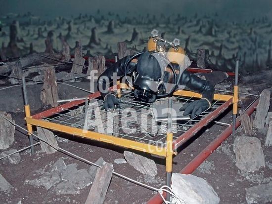 akg602398 Mondsee, Pfahlfeld im Mondsee. Pfahlbaureste aus der Jungsteinzeit der Mondseekultur (späten Jungsteinzeit zwischen 3600 und 3300, vielleicht 3000 v. Chr.), Lokalisierung, Aufnahme und Vermessung des Pfahlfeldes. Salzkammergut (Österreich, Oberösterreich). , Oberösterreich, Österreich.