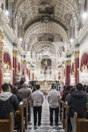 alb21281300 Mass at St. Mary's Church, Valletta, Republic of Malta, Europe.