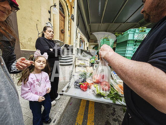 alb21281342 street sale of fruits and vegetables, Vittoriosa neighborhood (Birgu), Valletta, Republic of Malta, Europe.