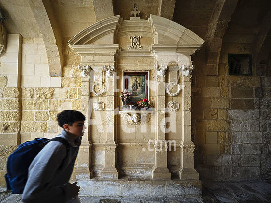 alb21281348 Chapel of the Virgin below Gardjola Gardens, 1551, watchtower decorated with symbols of vigilance, Senglea neighborhood (Isla), Valletta, Republic of Malta, Europe.