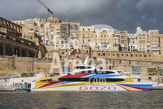alb21281563 tourist boat for passenger transport to the island of Gozo, Valletta, Republic of Malta, Europe.