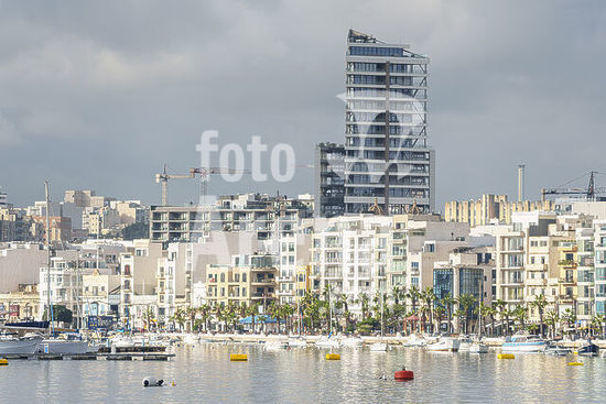 alb21281566 Valletta, New buildings replacing the old ones on the seafront promenade of the neighborhood of Sliema, Republic of Malta, Europe.