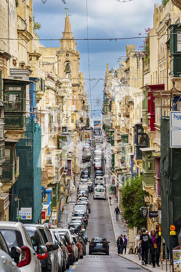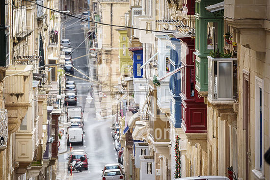 alb21281574 Typical street with balconies in the Valletta neighborhood, St. Paul Street., Valletta, Republic of Malta, Europe.