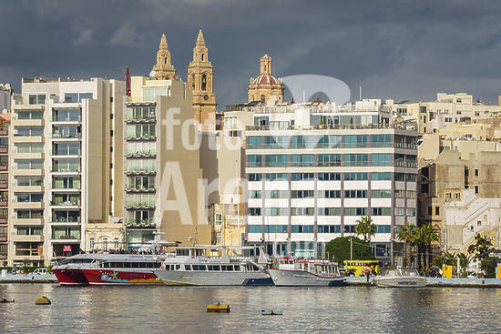 alb21281579 Valletta, New buildings replacing the old ones on the seafront promenade of the neighborhood of Sliema, Republic of Malta, Europe.