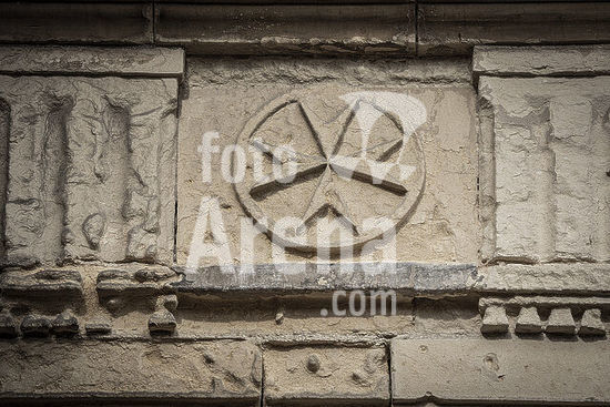 alb21281310 Maltese cross on a facade, near Victoria Gate, Valletta, Republic of Malta, Europe.