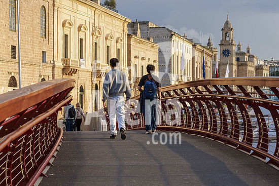 alb21281583 bridge on the seafront towards Castel Sant'Angelo, Vittoriosa neighborhood (Birgu), Valletta, Republic of Malta, Europe.