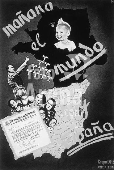 akg077072 Spanish Civil War, 1936-39. "Today Spain, tomorrow the world". Anti-fascist poster by the united parties of the Left.