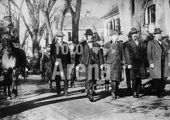 akg094209 Sacco and Vanzetti (Nicola Sacco, born 1891, and Bartolomeo Vanzetti, born 1888, trade union leaders in the USA, falsely accused in 1921 and executed in 1927). Sacco, Vanzetti, and others. Photo, location inknown, c. 1921.