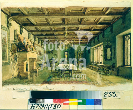 akg1011690 Sawwa Iwanowitsch Mamontow, russian greatindustrial and art patrons 1841-1918. "The Dining Room at Mamontow's House". Watercolor, 1884, by Elena (Jelena). Dmitrievna Polenowa (1850-1898). 29.2 × 32 cm. Abramzewo, Museum for Art a. Literature. Museum: Abramzewo, Museum for Art a. Literature.
