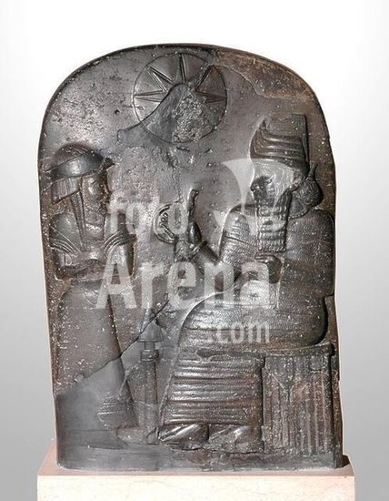 akg1095827 5327. A worshiper standing in front of a Mesopotamian deity. Susa (Iran) c. 1800-1500 BC.