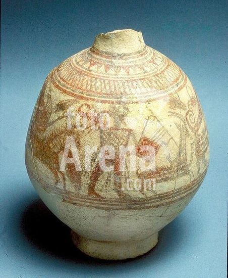 akg2355485 Vasenmalerei, griechisch, schwarzfigurig, Ende 6. Jahrhundert v. Chr. Herakles erwürgt den nemeischen Löwen. Schwarzfigurige Vase. Palermo, Museo Nazionale Archeologico. Museum: Palermo, National Archaeological Museum.