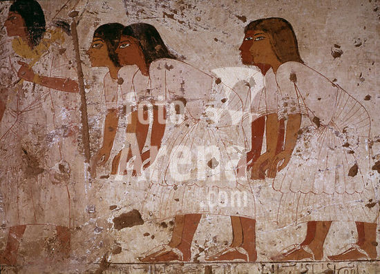 akg362218 Egyptian, Old Kingdom, 5th dynasty, c. 2400 BC. Group of musicians and dancing young girls. Relief (detail). Limestone, painted, width 111.5cm. Found at: Saqqara, Tomb of Nenkhefetka. (D. 47). Inv. no. JE 28504 (CG 1533). Cairo, Egyptian Museum. Museum: Cairo, Egyptian Museum.