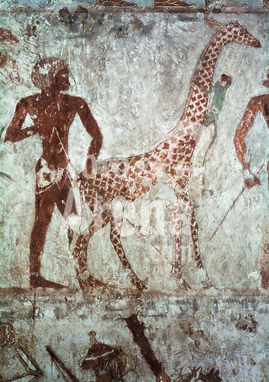 akg368955 Karnak (Upper Egypt), Temple of Amon-Re, Akhmenu-Festival Temple of Thutmose III. (New Kingdom, 18th dynasty, c. 1450 BC). Detail from the so-called "Botanical Garden" with exotic plants & animals. Relief, sandstone, height 110cm.