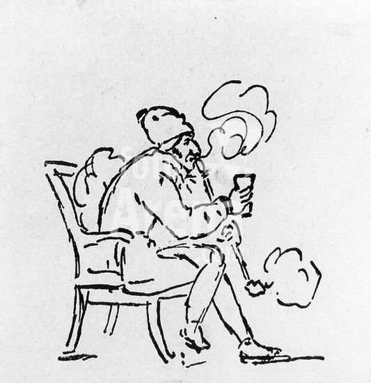 akg164547 Hoffmann, E.T.A (Ernst Theodor Wilhelm). poet, composer, and artist; Königsberg (Prussia) 24.1.1776 - Berlin. 25.6.1822. "Self-caricature with pipe and glass of punch". Drawing. From a letter to Ludwig Devrient, 9th January 1821. Author: E. T. A. Hoffmann.