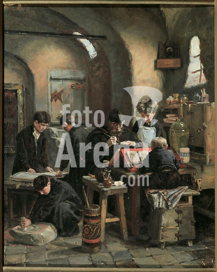 akg1948215 Polenowa, Jelena Dmitrijewna. 1850-1898. /. "Die Werkstatt des Ikonenmalers", 1887. Öl auf Leinwand. Moskau, Staatliche Tretjakow-Galerie. Museum: Moskau, Staatliche Tretjakow-Galerie. Author: ELENA DIMITREWNA POLENOWA.
