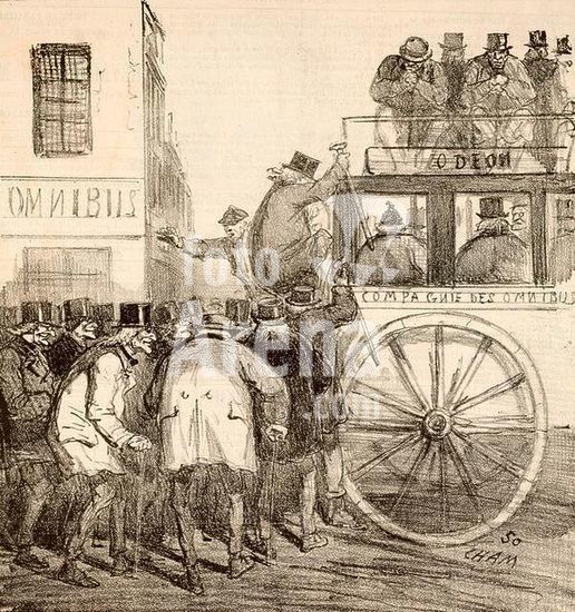 akg200471 zu: Verkehr / Pferdeomnibus. "Les Senateurs reduits à 15 000 francs (L'Omnibus de l'Odeon". (Karikatur auf die Kürzung der Bezüge der franz. Senatoren; überfüllter Pferdeomnibus). Kreidelithographie von Amédé de Noë, gen. Cham (1819-1879). Aus: Le Charivari, 39. Jg., Paris, 11. Juni 1870. Berlin, Sammlung Archiv für Kunst und Geschichte. Museum: Berlin, Sammlung Archiv für Kunst und Geschichte.