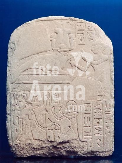 akg201946 Egyptian, New Kingdom, 19th Dynasty, 1305-1189 B.C. - Stele marking the grave of the supervisor of the gold miners, Panweret, with inscription of the sacrificial prayer to crocodile god Sebek. Limestone, height 23cm. From Qantir. Hildesheim, Roemer-Pelizaeus-Museum. Museum: Hildesheim, Roemer-Pelizaeus-Museum.