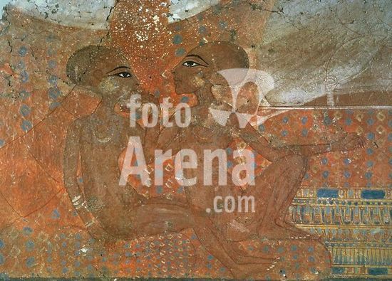 akg2163848 Ägyptische Malerei, Neues Reich, 1375-1358 v. Chr. Zwei Töchter Echnatons. Ausschnitt. Malerei auf Gips. Fundort: Residenz in Tell el-Amarna, Haus XIII. Inv. Nr. 1893-I-41, Oxford, Ashmolean Museum. Museum: Oxford, Ashmolean Museum.