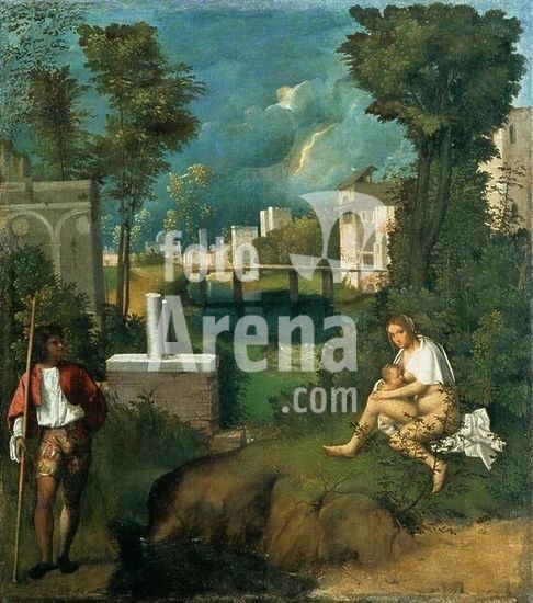 akg245370 Giorgione. 1477/78 - 1510. "La Tempesta" (The Tempest). Oil on canvas, 82 × 73cm. Venice, Galleria dell'Accademia. Museum: Venice, Galleria dell'Accademia.
