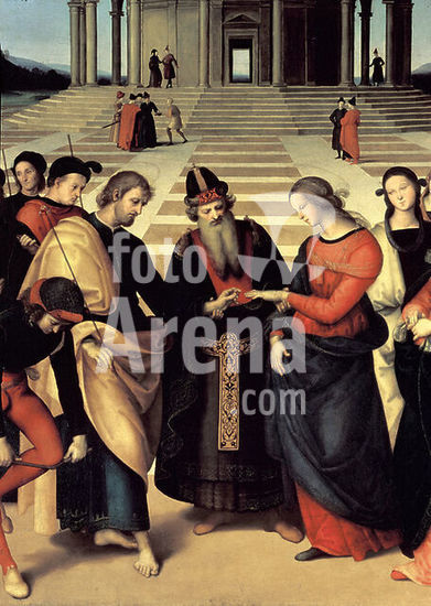 akg290452 Raphael, real name Raffaello Santi 1483-1520. "Mary's wedding" (Lo Sposalizio), 1504. Detail. (Made for the chapel of the Albizzi family in S.Francesco in Castello). Oil on wood, 170 × 117cm. Milan, Pinacoteca di Brera. Museum: Milan, Pinacoteca di Brera.
