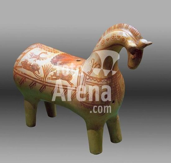 akg301954 Persian, 8th/7th century B.C. Rhyton in the form of a horse. Clay, painted; height 22.8cm, length. 30cm, width 10.5cm. Found: Susa (Khuzistan, S.West Iran). Inv. no. 1329/3179. Teheran, National Museum. Museum: Teheran, National Museum.