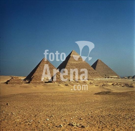 akg319460 Giza (Egypt), Pyramids. (4th Dynasty, 3rd millennium B.C.). The pyramids of Cheops, Chephren and Mykerinos. Photo, undat.