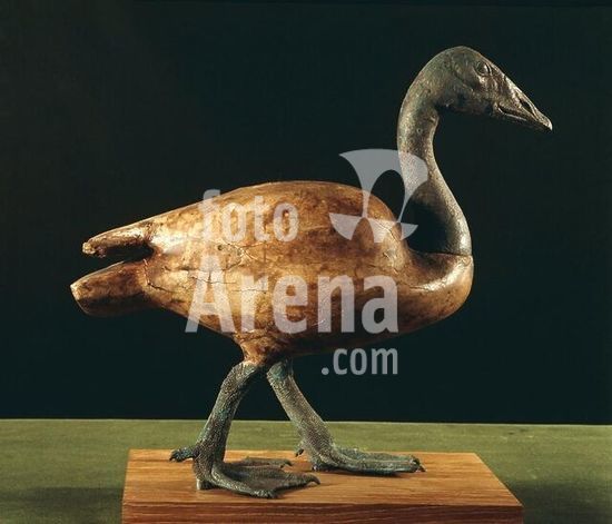 akg364198 Art égyptien, basse-époque. Oie sacrée d'Amon. Sculpture, bronze et étoffe stuquée. H. 0,32 ; L. 0,14. Origine : Égypte. E 26020. Département des Antiquités égyptiennes, Paris, Musée du Louvre. Museum: Paris, Musée Du Louvre.