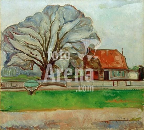akg364272 Munch, Edvard. 1863-1944, Norwegian painter. "Trees with red roof", 1903. (House of the light house keeper in Travemünde). Oil on canvas, 90 x 100.5 cm. Inv. no. M 478. Oslo, Munch-Museet. Museum: Oslo, Munch-Museet. Copyright: Additional copyrights may need to be cleared on this image when licensed for use by clients in the USA. Please contact us for additional information.