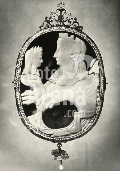 akg3796282 Livia Drusilla (Livia Augusta). Wife of the later Emperor Augustus, first married to Tiberius Claudius Nero, mother of Drusus and Tiberius, 58 BC - 29 AD. Cameo with her portrait (attribution) and the bust of Augustus, First half of the 1st century afterChr..