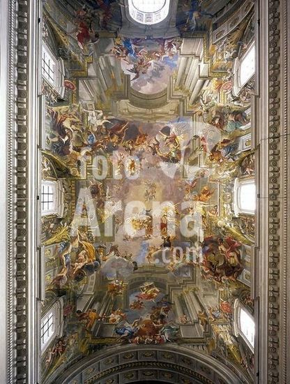 akg426710 Rome - Roma (Italy), S. Ignazio, nave vaults. "Ascension of St. Ignatius of Loyola". Fresco, 1691/94, by Andrea Pozzo. (1642-1709), 17 × 36cm.