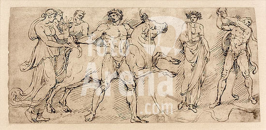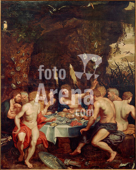 akg467478 Rubens, Peter Paul. 1577-1640, Werkstatt. "Das Festmahl des Acheloos", um 1603/27. (Ovid, Metamorphosen, VIII. Buch, Vers 547-619). Öl auf Eichenholztafel, parkettiert, 100 × 79,5 cm. Privatsammlung , 2006.