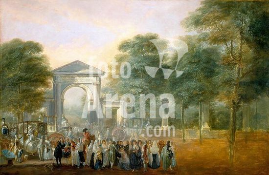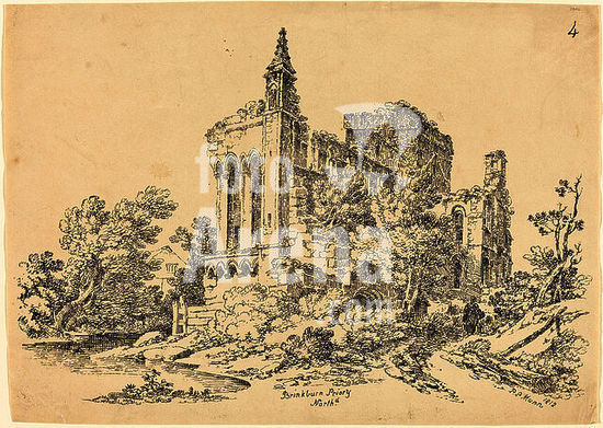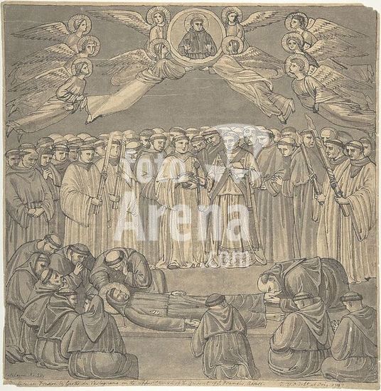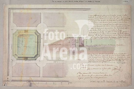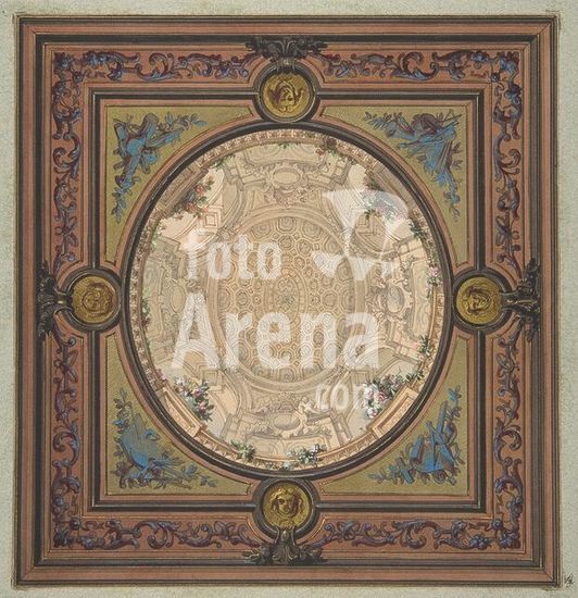 Lachaise, Jules-Edmond-Charles 1897-1897. Design for the decoration of a ceiling with a trompe l'oeil painting of a coffered dome, Drawing, ca. 1830-1897. Graphite, pen and ink, watercolor and gold paint on wove paper; mounted on blue wove paper, 37.8 × 27.1 cm. Inv. Nr. 67.827.258. New York, Metropolitan Museum of Art.