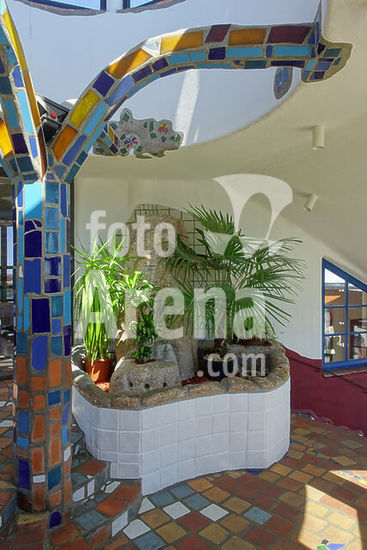 akg5417708 Hundertwasser-Autobahnraststätte Bad Fischau Autobahnrasthaus Bad Fischau. Friedensreich Hundertwasser 1989-1990. 2721 Bad Fischau, Österreich.